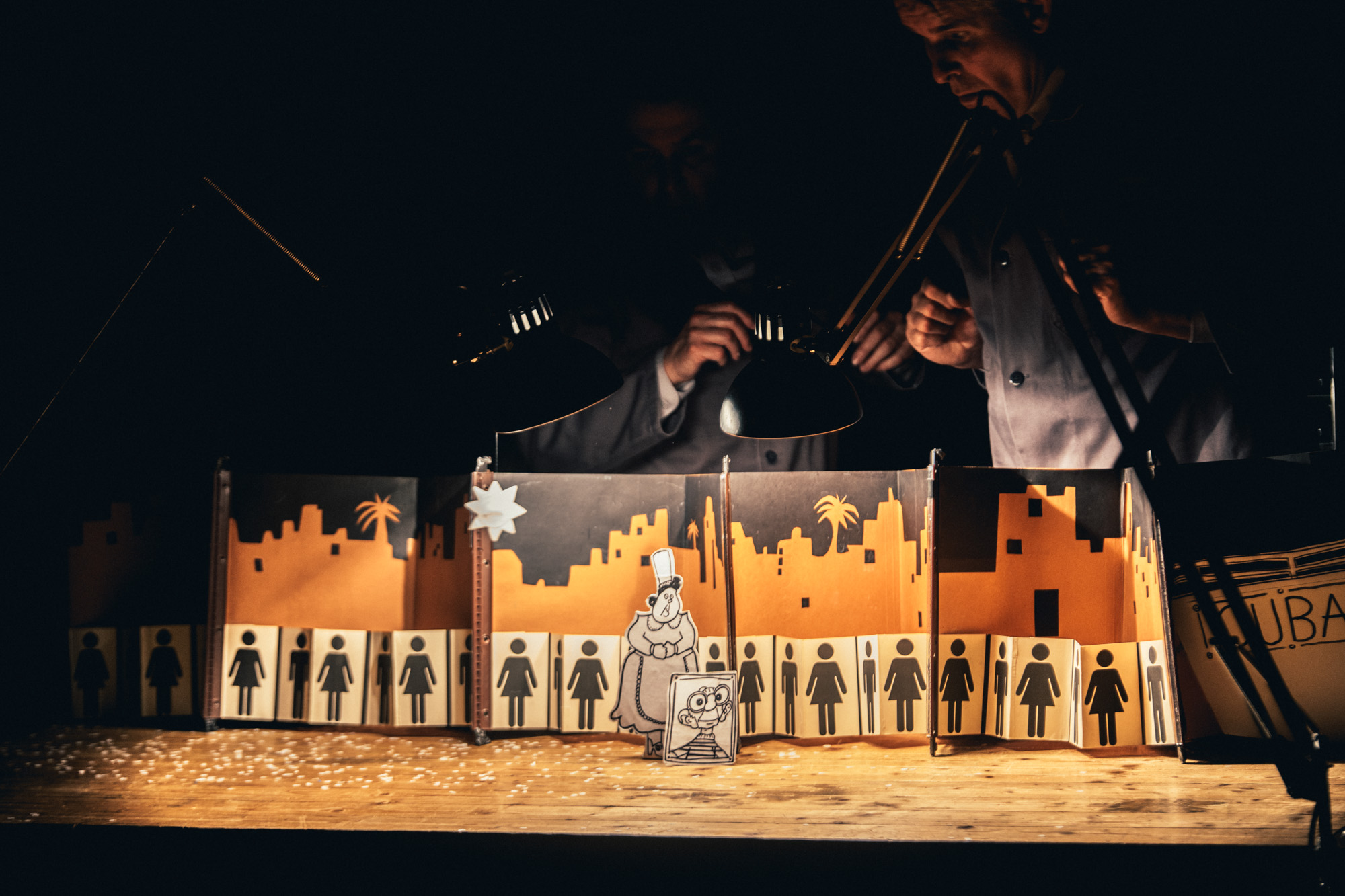 ce théâtre de papier, sans paroles mais bruité, précis et burlesque, se fait à vue, se