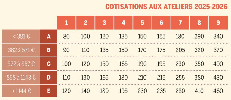 TARIFS ATELIERS